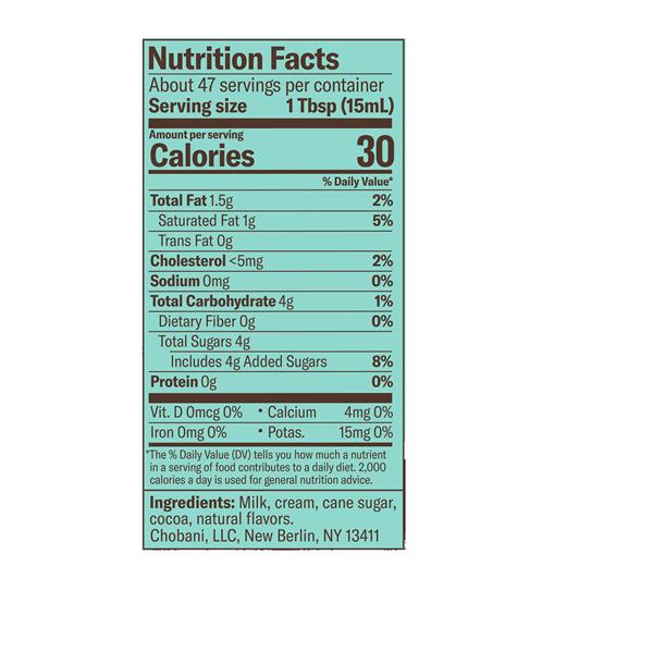 Chobani Coffee Creamer Peppermint Mocha Calories Nutrition Analysis More Fooducate